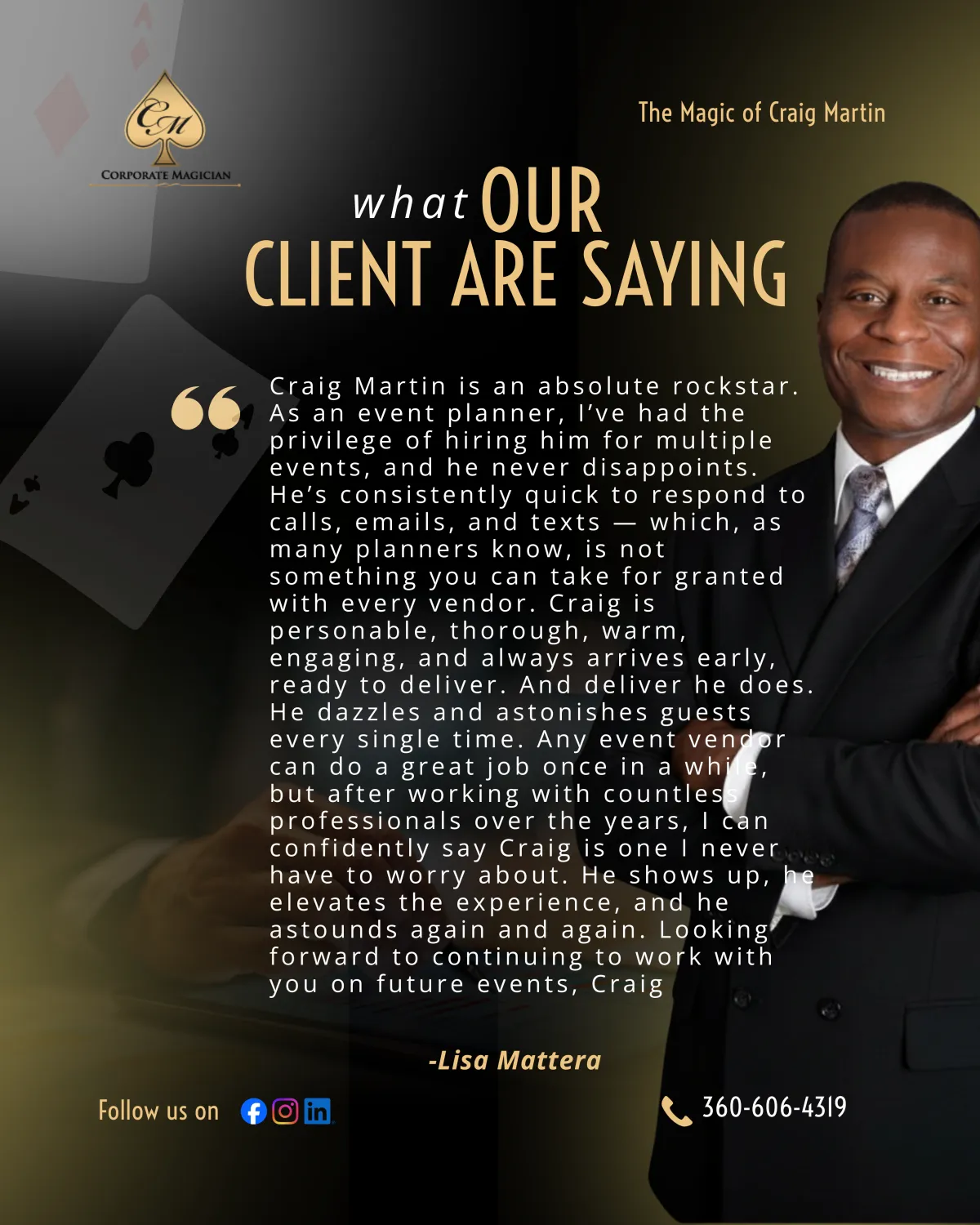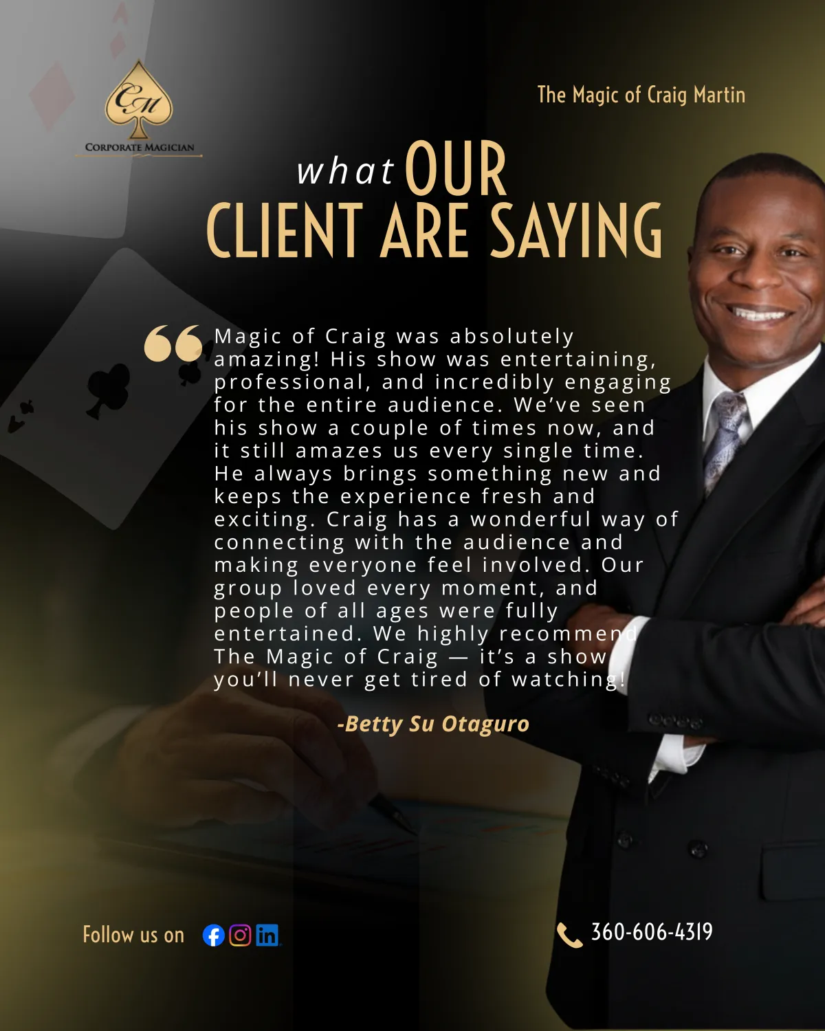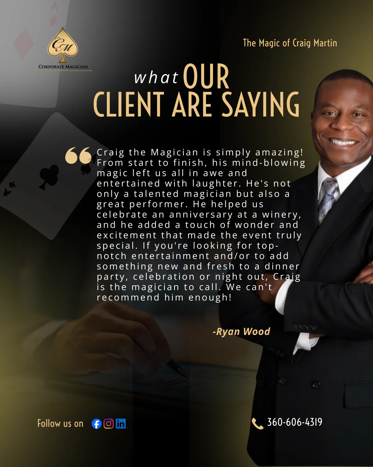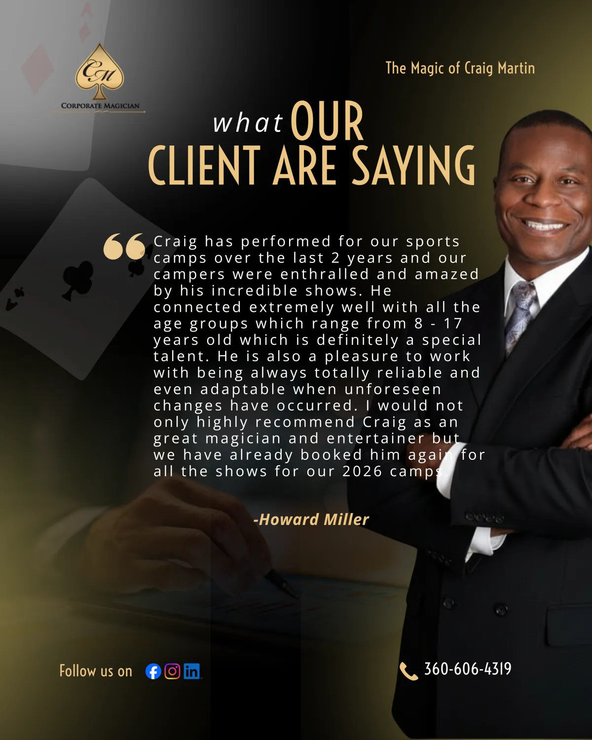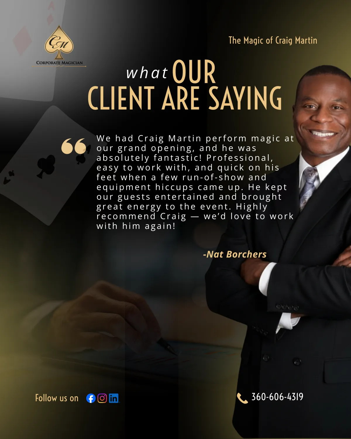 Craig offers cost-effective, results-oriented and over the top performances. You never get a second chance to make a first impression – Book Craig Today!